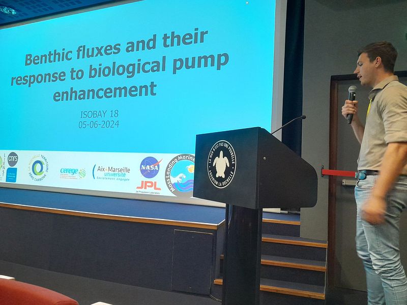 Hinne van der Zant (PhD candidate) talking about sediment-water flux modeling in the Bay of Biscay.